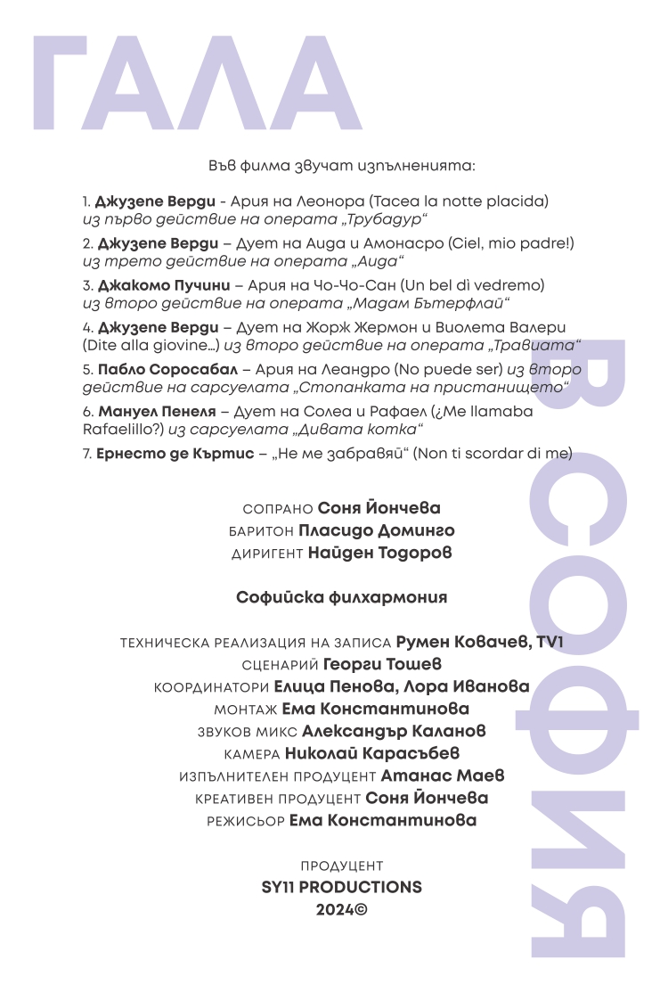 Филмът е реализиран от продуцентската компания на българското сопрано – SY11 Events, която стои в основата и на настоящото продължение: “Гала в София 2025”.
